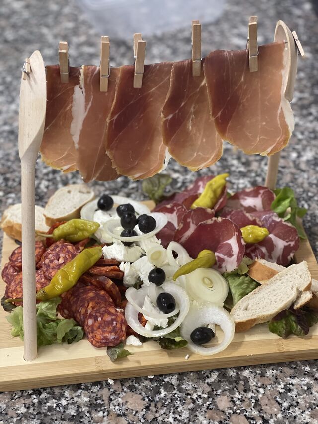 Schafskäse- getrockneten Tomaten- Pepperoni-Obiven-Knoblauch-Flammkuchen